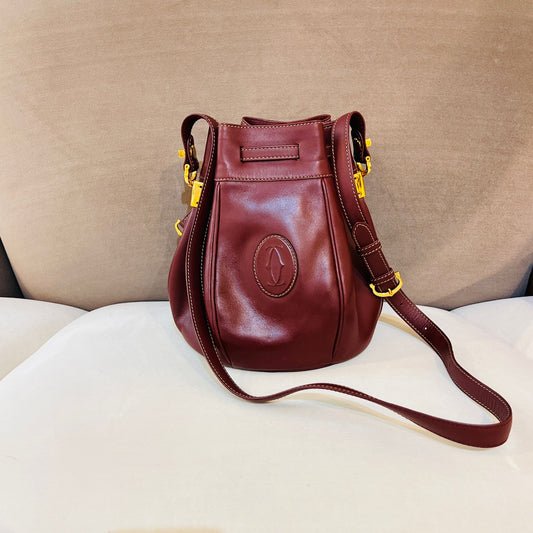 Cartier Vintage Trinity Bordeaux Leather Gold Handle Handbag
