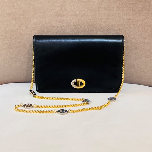 Christian Dior Vintage Black Leather Cd Buckle Shoulder Bag