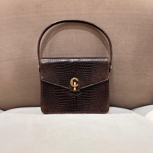 Christian Dior Vintage Crocodile-Embossed Brown G-Clasp Handbag