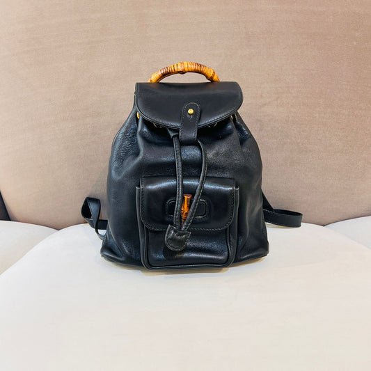 搶先評價 “Gucci Vintage Bamboo Black Leather Small Backpack”